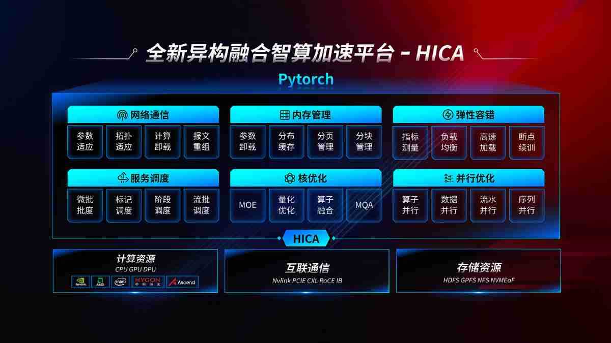 通过自研的服务层、、中间适配层、、、、以及调度编排算法,,采用数据并行、、模型并行等多种并行方式,,,,把并行计算任务进行有效的分解,,使其分别由相应的软件栈和算力资源来承接。。当GPU资源变化,,,HICA可以实时动态调度计算子任务并调整模型拓扑和架构,,,,以充分聚合各种算力资源。。。。